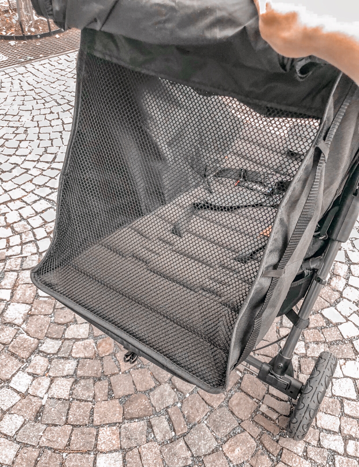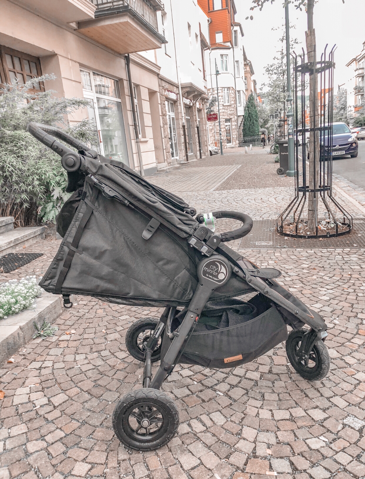 Ich muss gestehen, dass ich mich niemals für einen Wagen mit ,,nur“ drei Rädern entschieden hätte, da ich skeptisch war. Mittlerweile sind wir aber mehr als nur überzeugt. Durch die All Terrain Räder kann man den Wagen nicht nur auf jeglicher Unterfläche schieben, sondern auch perfektes Wenden oder Überqueren von Bordsteinen etc. sind kein Problem. Ein wahnsinniger Fahrkomfort. Der Griff des Mini City ist größenverstellbar und ebenfalls einfach in der Handhabung. Auch die Handbremse ist fantastisch, dadurch könnt ihr auch problemlos in High Heels steuern und bremsen. 😉