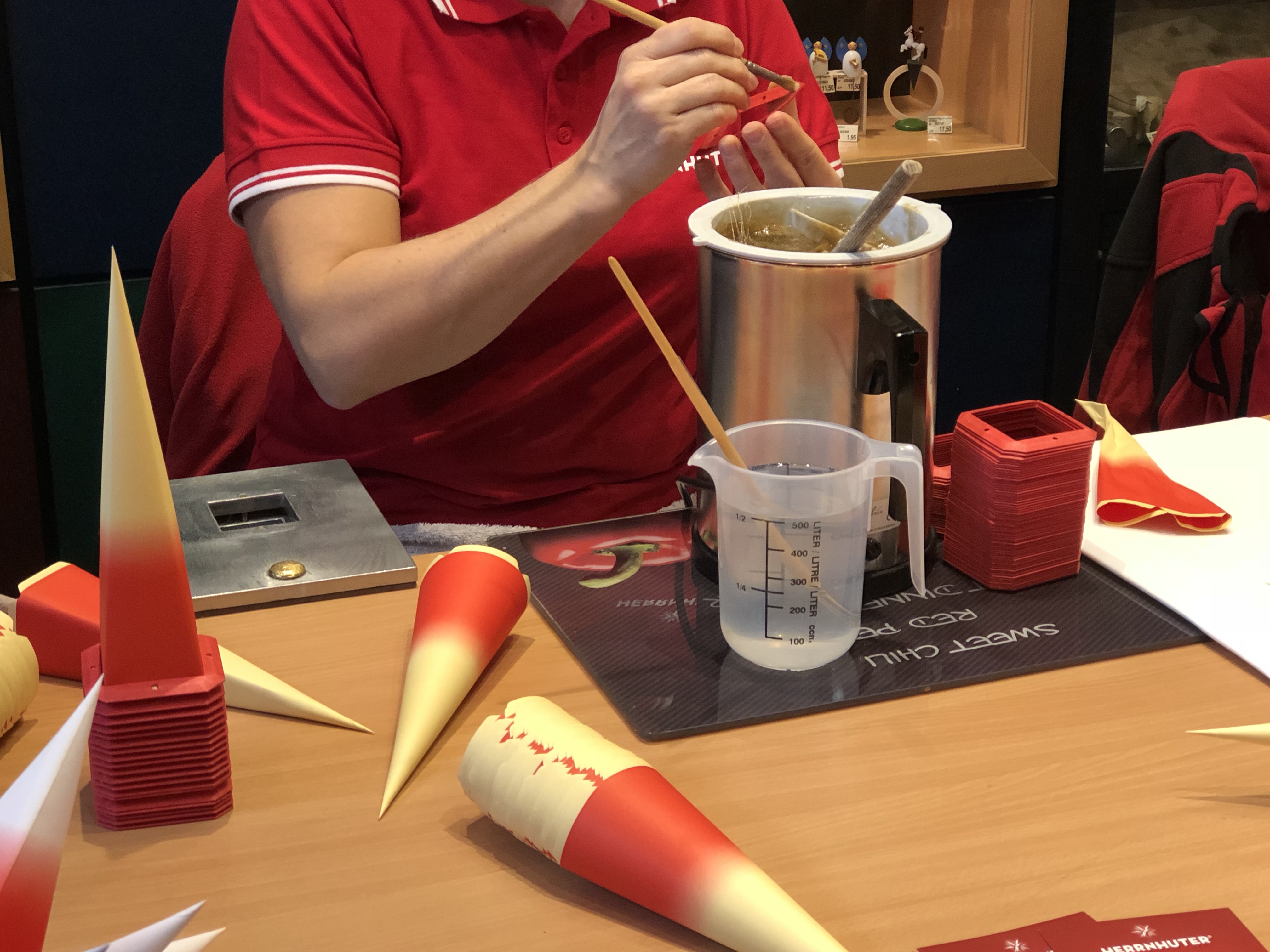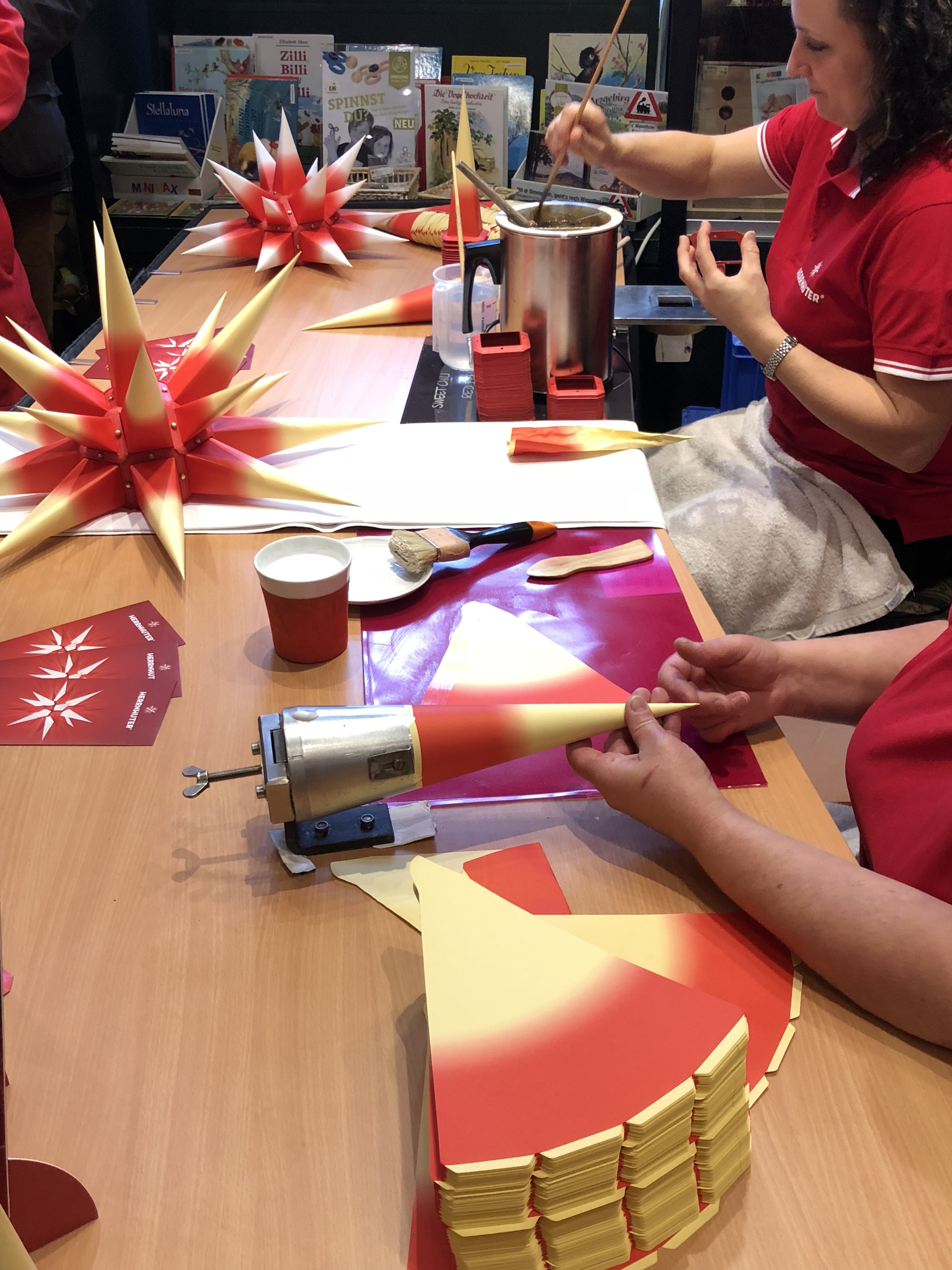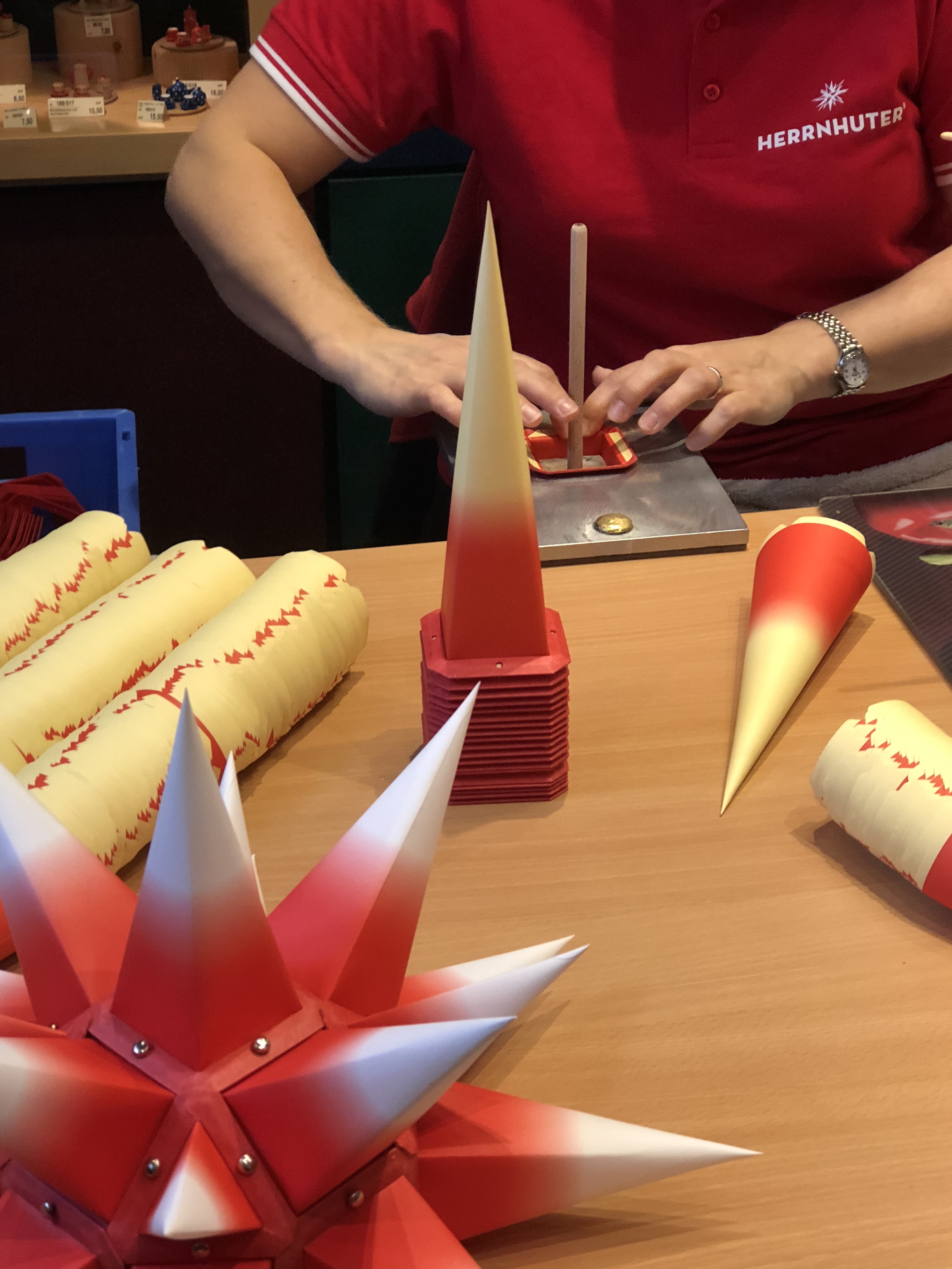 Die bekannten Herrnhuter Sterne stammen zwar nicht aus dem Erzgebirge, sondern aus der Oberlausitz, sind aber um die Weihnachtszeit nicht aus Seiffen wegzudenken. Überall sieht man die wunderschönen Sterne leuchten. Umso mehr habe ich mich gefreut, dass wir in Seiffen die Möglichkeit hatten, einmal ein wenig hinter die Kulissen gucken zu können. Wusstet ihr, dass die bekannten eckigen Zacken des Herrnhuter Sterns zuerst rund sind?!